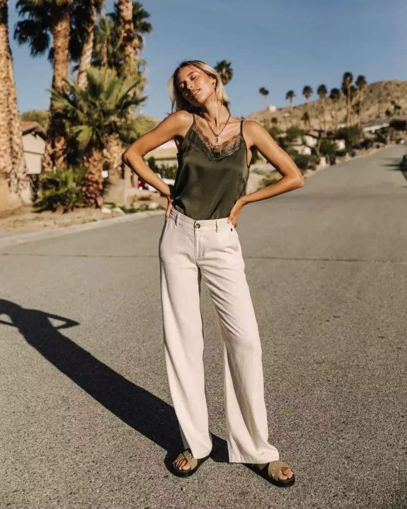 Avec une taille basse, il se distingue par sa silhouette fluide et confortable. Sa matière non stretch, au toucher léger et à l’aspect lin, est rehaussée d’un imprimé tropical coloré, apportant une touche de fraîcheur et d’exotisme à votre garde-robe.