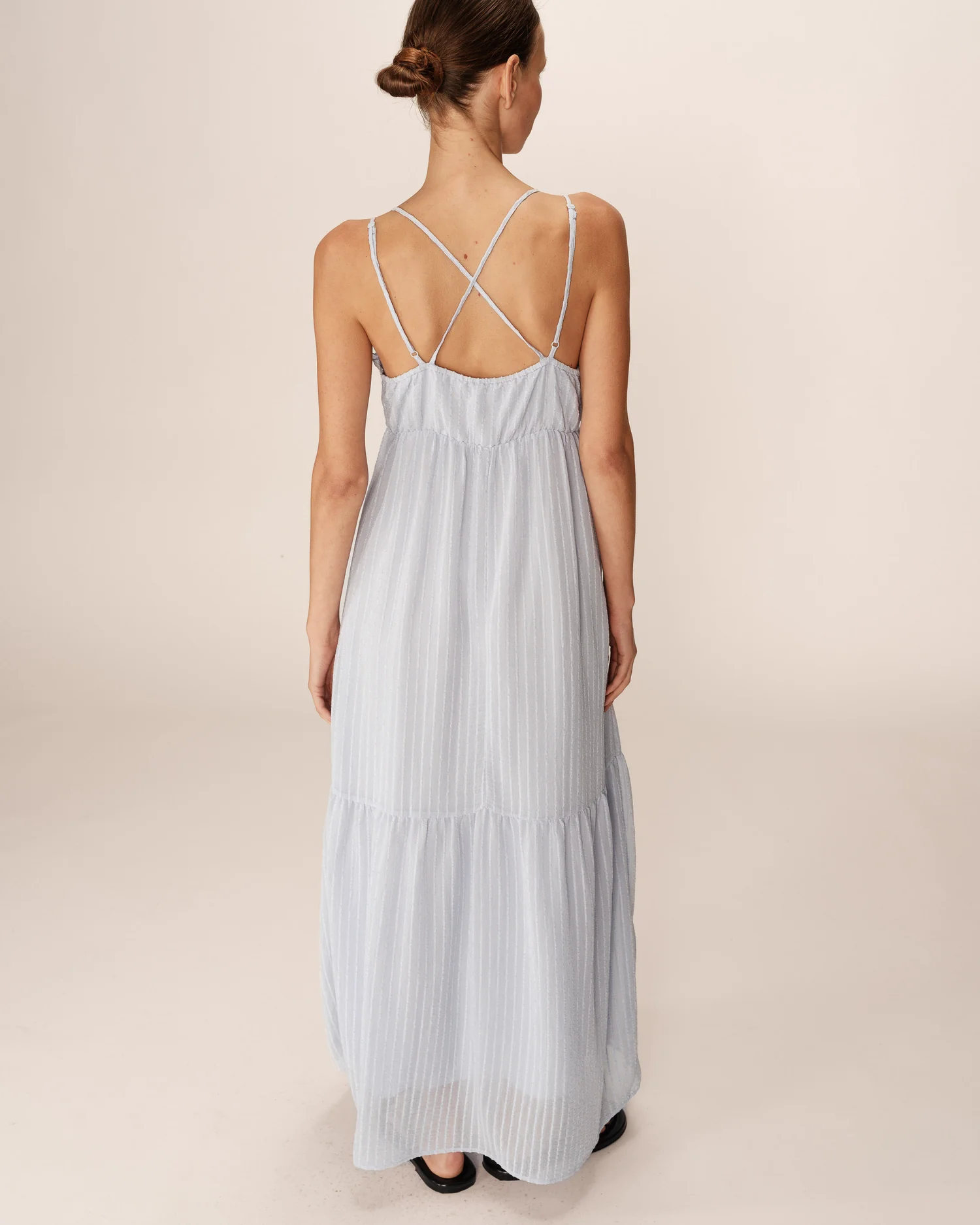 11 900 FcfpLe prix initial était : 11 900 Fcfp.7 140 FcfpLe prix actuel est : 7 140 Fcfp.La robe longue PRETTY est doublée et confectionnée dans un tissu léger et fluide à rayures qui dessinent une silhouette fluide et légère. Les détails travaillés, tels que les finitions volantées à l’encolure et les volants au bas, soulignent l’inspiration bohème et romantique de la robe longue PRETTY. L’encolure dégagée et les bretelles fines et réglables croisées dans le dos proposent une allure résolument féminine et raffinée. Le modèle rejoint notre gamme en fibres naturelles ‘Un Brin de Vert
